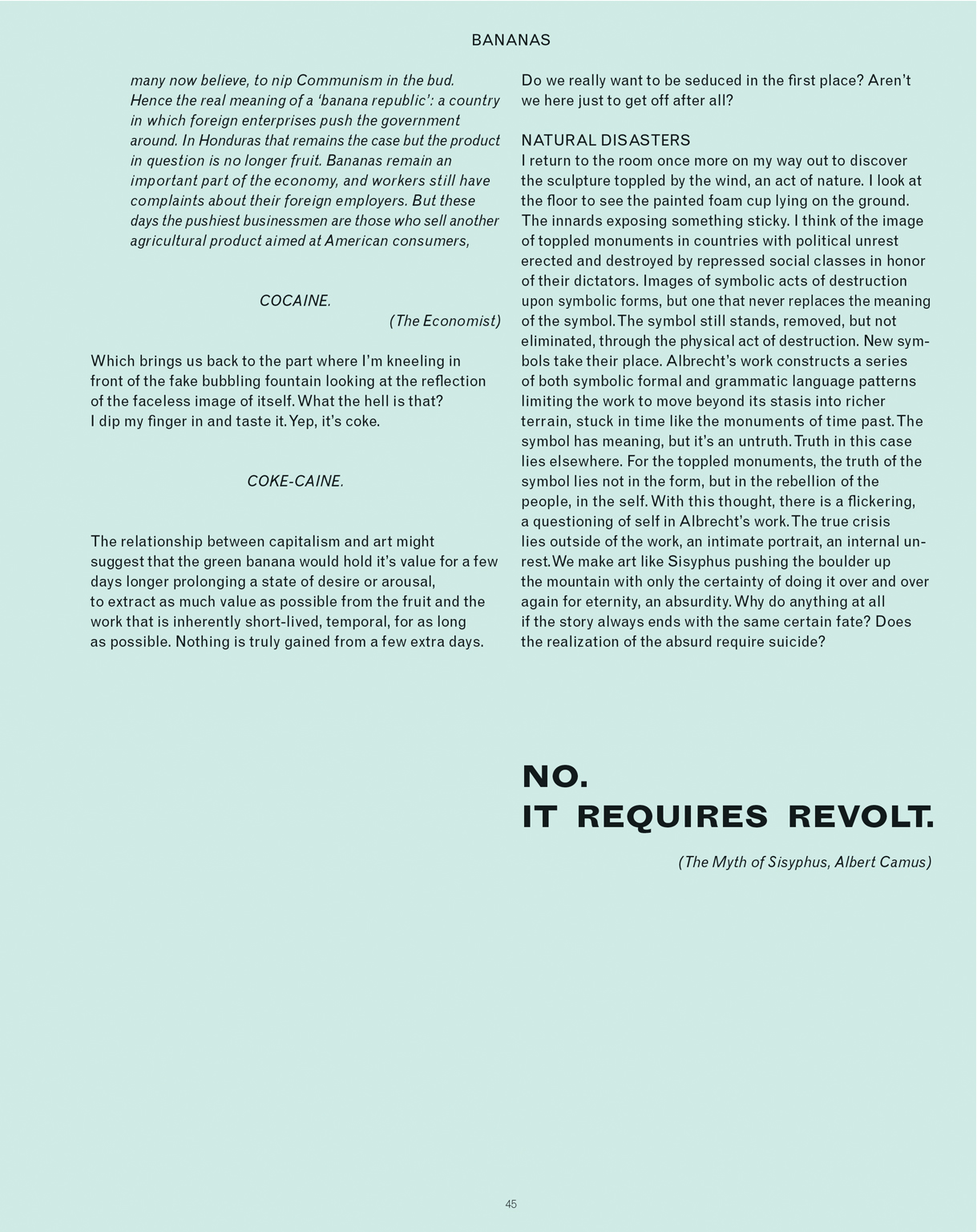 Critical writing and design for I Don’t Even Buy Green Bananas Anymore by Lucas Albrecht.
