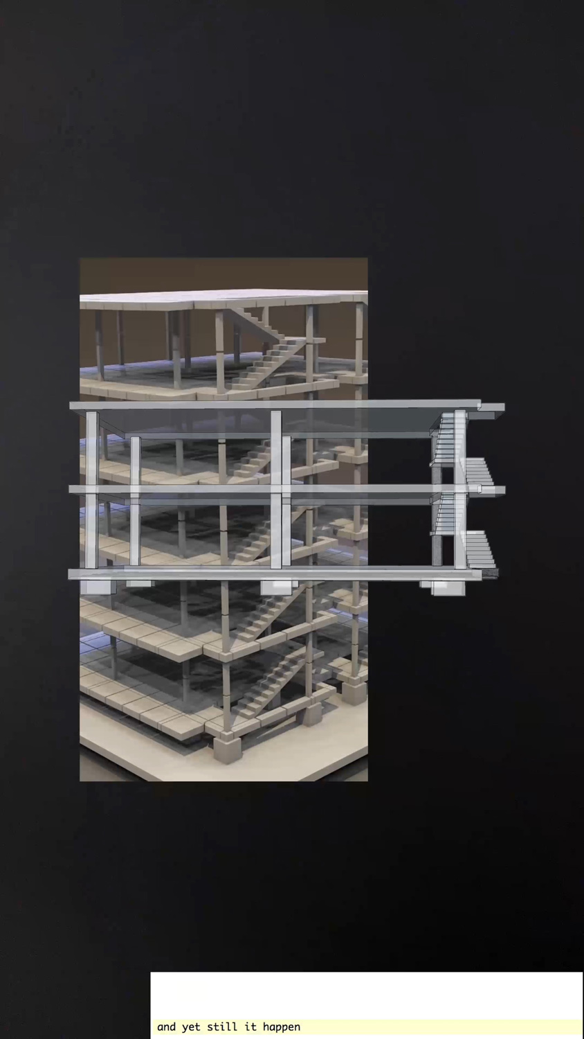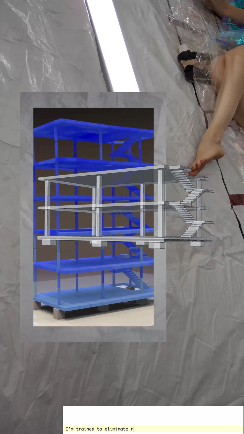 Experimental film study #0255 investigating the House Domino (Le Corbusier), internet sampling, frame, the figure, the interface, the drone image.